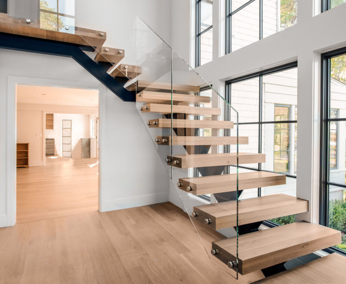 Эффект «парящих» в воздухе ступеней из массива дуба
